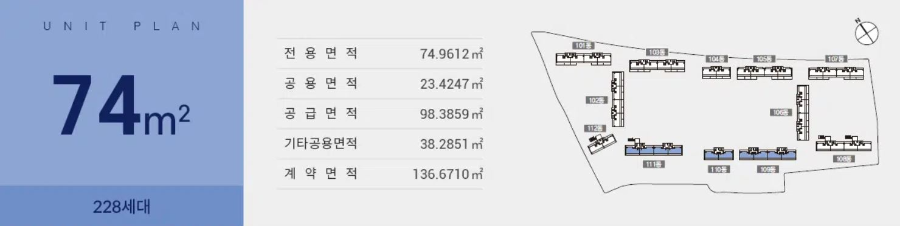 안성 공도 라포르테 아파트 단지중 가장 앞쪽에 배치가 되어 있는 74타입은 228세대 완공 예정이며 단지 앞쪽으로 배치가 되어있는데요.74타입 앞쪽으로는 다른 건물이 들어서지않아 일조권이나 채광 그리고 넓고 길게 보이는 뷰 때문에 많은 분들이 선택을 하고 곳 마감 될 예정이라고 합니다.