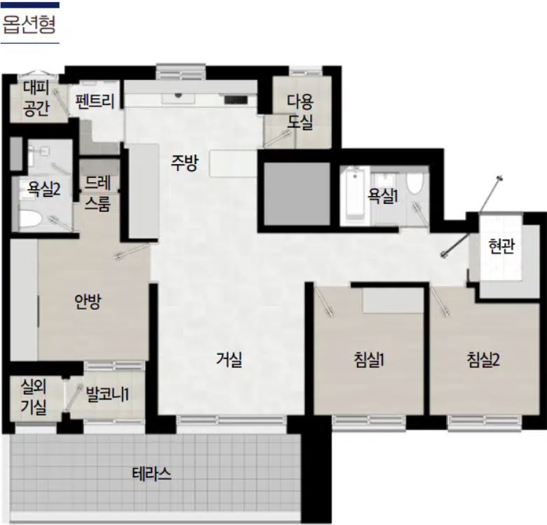 모든 세대가 판상형 4Bye 구조로서 많은 분들이 집을 선택하실때 가장 많은 인기가 있는 타입으로 전세대 완공예정입니다.