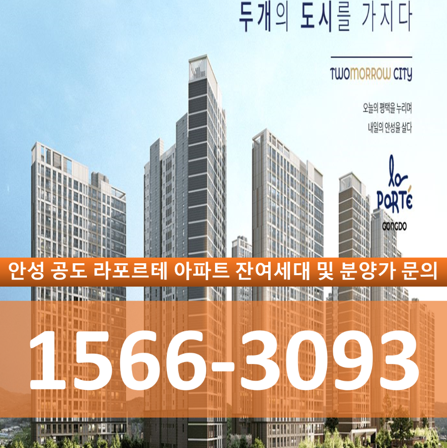 안성 공도 라포르테 아파트 잔여세대 및 분양가가 궁금 하신 분들은 아래 번호로 연락주시면 친절한 상담 받으실수 있다고 합니다.합리적인 가격으로 이미 많은 분들이 선택을 하셨지만 지금도 늦지 않으셨다는 말씀 드리고 싶습니다.